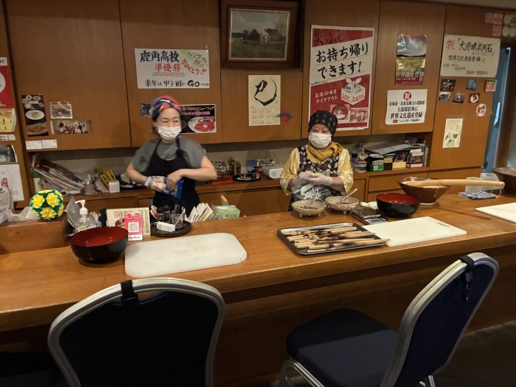 Er doen negen mensen mee aan de kookles in restaurant Mifuji. We maken Kiritanpo en Kiritanpo Nabe. De eigenaresse is een oud, klein vrouwtje met een constante glimlach. Het is drie uur en we gaan meteen aan het werk, want om 5 uur komen de eerste restaurantgasten al. Alles ligt keurig klaar en we kunnen beginnen.